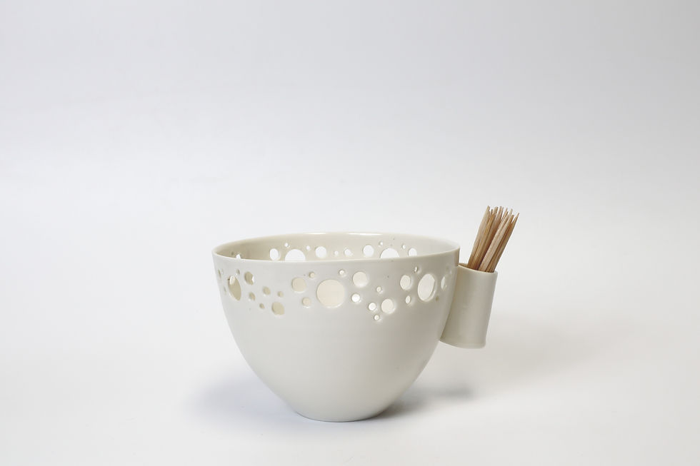 C'est une collection fine et élégante. On retrouve la beauté simple et la blancheur pure de la porcelaine, sublimés par un jeux de bulles ajourées qui forme comme de la dentelle sur le haut des pièces. Cette terre nous montre bien qu'elle n'est pas comme les autres!