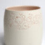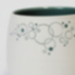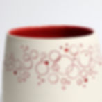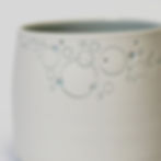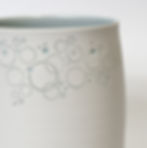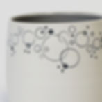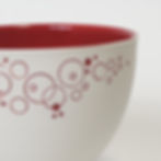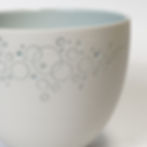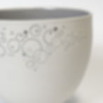 A l'intérieur de la pièce on trouve le brillant de l'émail. Il est gris, bleu ciel, vert, rose pâle, violet ou rouge. A l'extérieur le mat de la porcelaine brute. De fines bulles colorées rappellent la couleur intérieure. Chaque bulle est faite avec un outil différent, de ce fait, le décor n'est jamais identique.